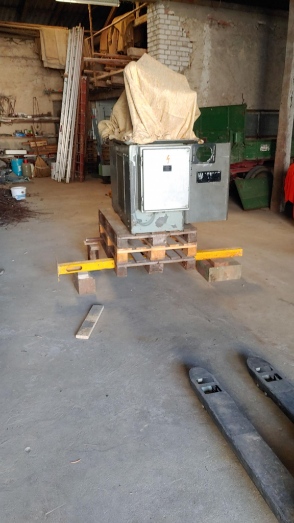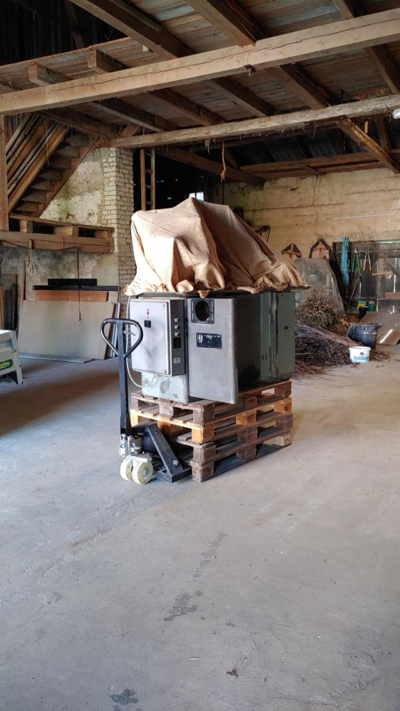 By now, we’ve gained a questionable amount of experience unloading heavy machines from a car trailer, but it’s still a spectacle every time. This round we went with the classic: stack some pallets behind the trailer, drag the machine onto them, and lower it down like two very determined forklifts… without a forklift.