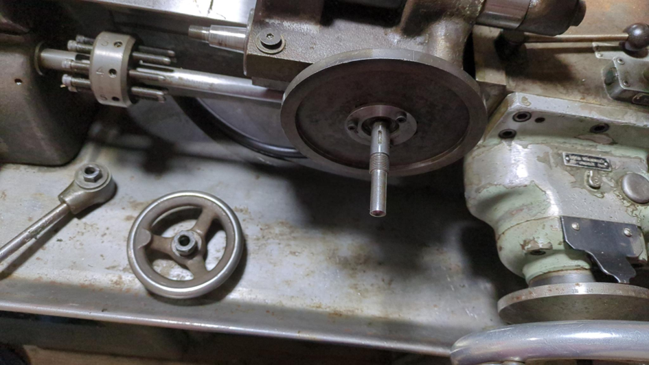 This one actually gave us some trouble. In the end there were more problems as always, like a missing woodruff key, but long story short: This lathe has two ways of how one can move the cross slide. Either by using a leadscrew, or by using a lever. Problem was, as far as we understood the mechanism, that the lever is supposed to be removeable, but would not budge. So it was limiting out range of motion. In the end some heat and a bearing puller helped to free the stuck lever and now we can use the cross slide as well.